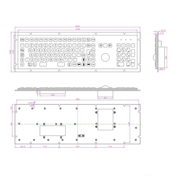 Teljes értékű magyar klaviatúra és optikai trackball, numerikus billentyűzettel