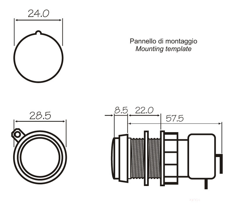Jó minőségű, olasz, Alberici gyártmányú nyomógomb izzóval.