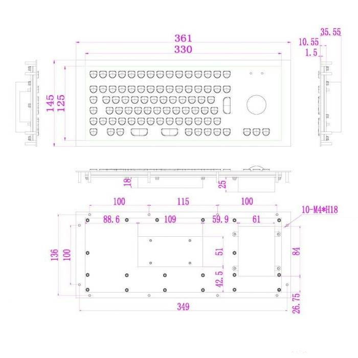 METAL Keyboard,MINI vandálbiztos billentyűzet + trackball